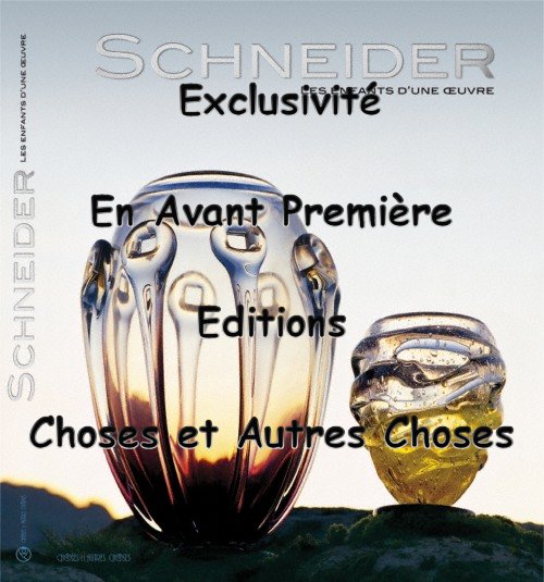 Ci-dessous vous pouvez découvrir la première de couverture du livre et catalogue " SCHNEIDER Les Enfants d'une Oeuvre " qui a été présenté au public par ses auteurs Barlach Heuer, Laurence Serre et Jean Pierre Serre ainsi que par le photographe Tomas Heuer lors de l'inauguration de l'Exposition " SCHNEIDER Les Maîtres du Verre " qui a lieu à Sarreguemines du 2 Mars au 28 Mai 2012.