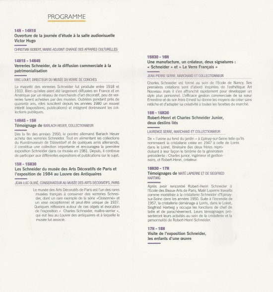 Programme de cette journée d'étude : 14H00 - 18H00 " Schneider Les Enfants d'une Oeuvre " :