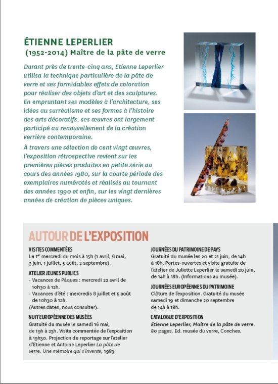 Visuel Plaquette extrait 3 : " Etienne Leperlier Maître de la pâte de Verre" Musée du Verre de Conches en Ouche 2015