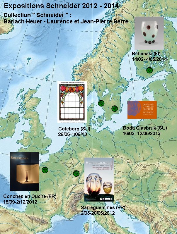 L'Exposition Itinérante Schneider, oeuvre des collectionneurs Barlach Heuer, Laurence Serre et Jean Pierre Serre qui rassemble plus de 300 verreries et documents d'époque a depuis sa première apparition en public à Sarreguemines en 2012 traversée l'Europe.