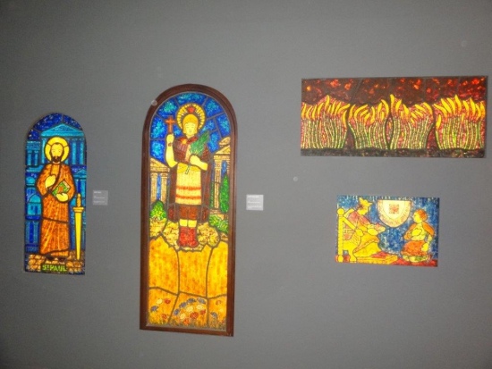 Quatre vitraux de François Décorchemont, en haut à droite " Barkarole " d'après une composition de Barlach Heuer.