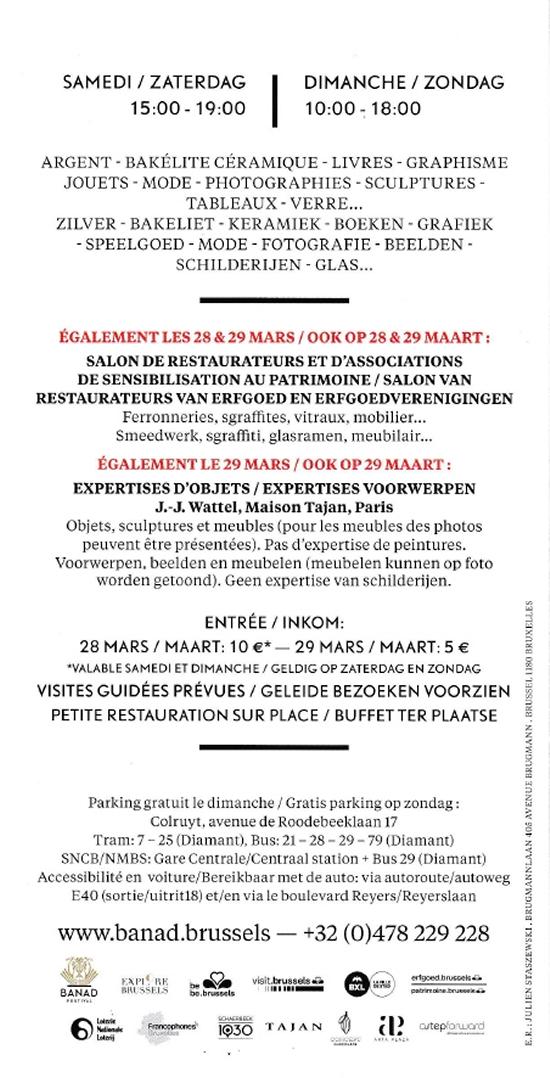 Visuels de la plaquette " Salon Restaurateurs Experts et Foire Art Nouveau Deco " Bruxelles 2020