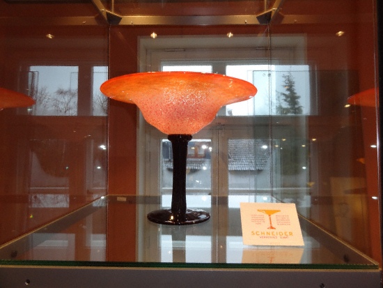 - 14H30 : Présentation de la donation de deux pièces de Charles Schneider au Musée de Petershagen, une grande coupe sur jambe vénitienne signée Schneider et un vase décor Houblons signé Le Verre Français. Vous pouvez découvrir le visuel de ces deux pièces offertes au Musée de Petershagen avec les photographies ci-dessous.