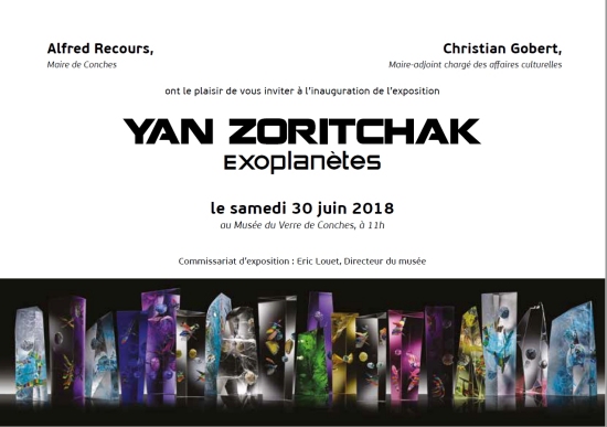 Le Musée du Verre de Conches en Ouche sous la direction de Monsieur Eric Louet Directeur des Musées de Conches organise l'Exposition " Yan Zoritchak Exoplanètes "du 30 Juin au 16 Septembre 2018.