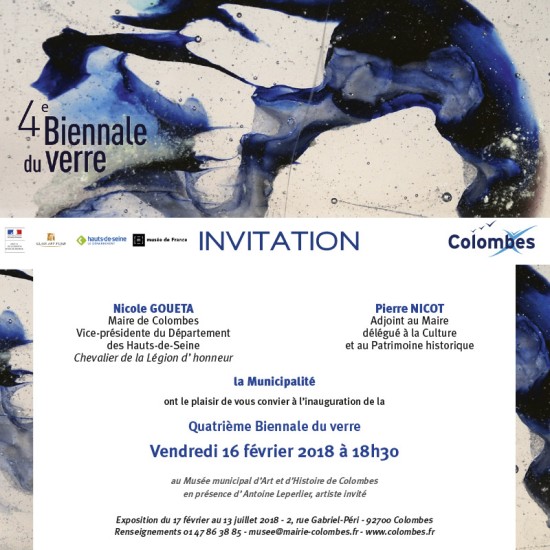 Visuel Plaquette Vernissage " 4° Biennale du Verre de Colombes Vernissage du 16 Février 2018 "