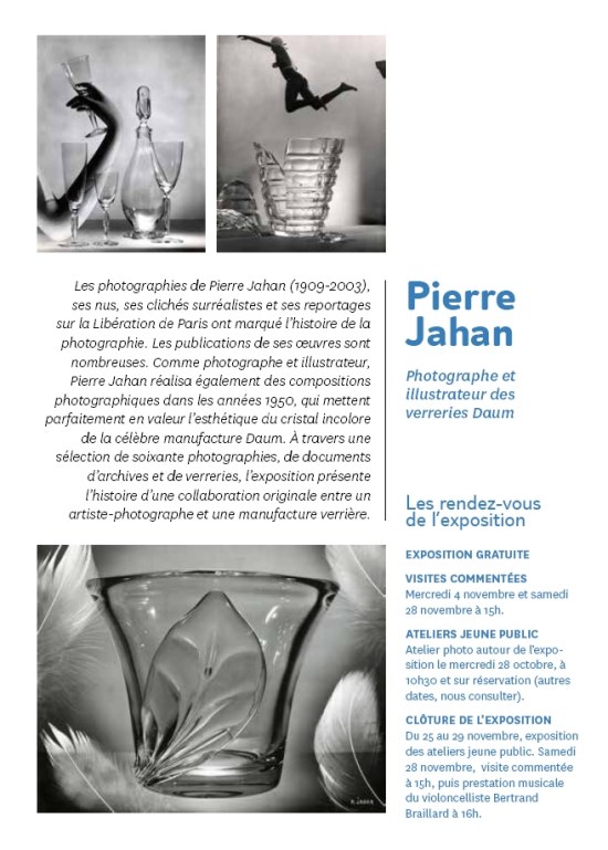 Exposition " Pierre Jahan Photographe et Illustrateur des Verreries Daum" au Musée du Verre de Conches du 17 Octobre au 29 Novembre 2015 :