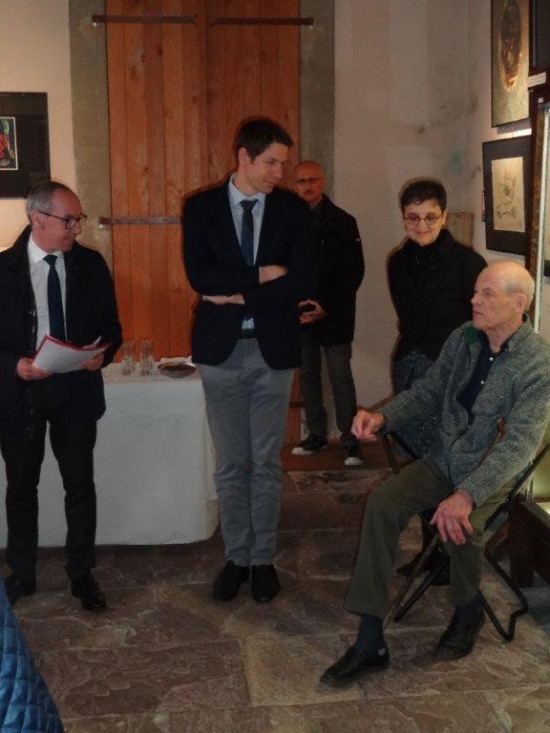 Laurence Serre et Barlach Heuer écoutent avec attention Monsieur Jean-Charles Foucher, Adjoint à la culture à la Mairie de Remiremont.