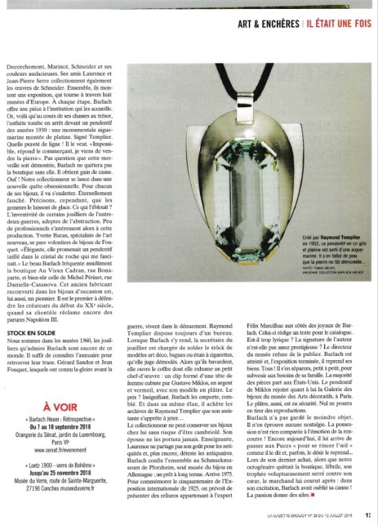 Ces documents sont des extraits provenant de la Gazette Drouot N°28 de Juillet 2018, le contenu de ceux-ci est entièrement la propriété intellectuelle de leur rédacteurs respectifs.